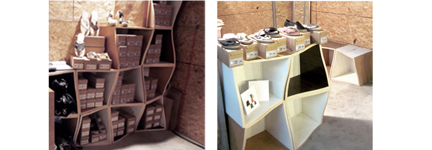 העיצוב נעשה במסגרת מגבלות החלל, שהיה קטן במיוחד. קוביות 'פרנק' נתנו מענה לתצוגה, אחסנה וספסל ישיבה/מדידה. התוצאה - חנות בזעיר אנפין.